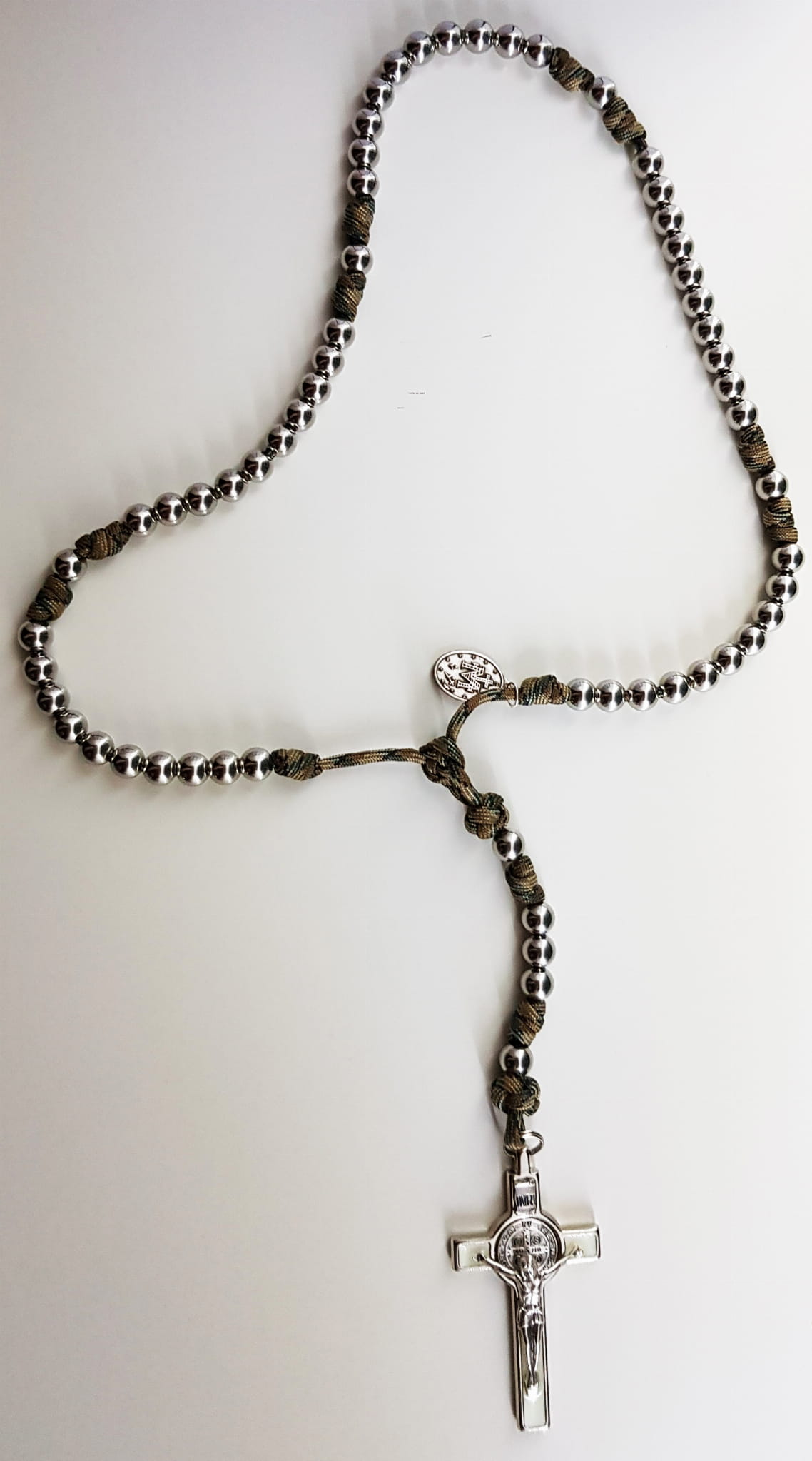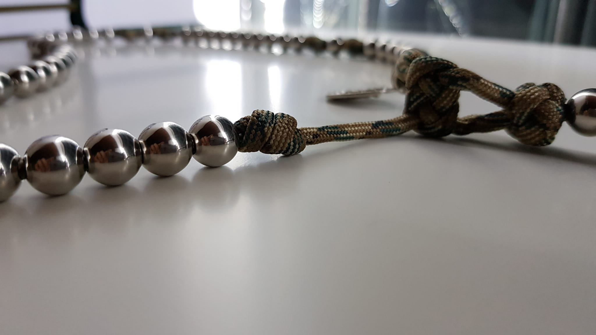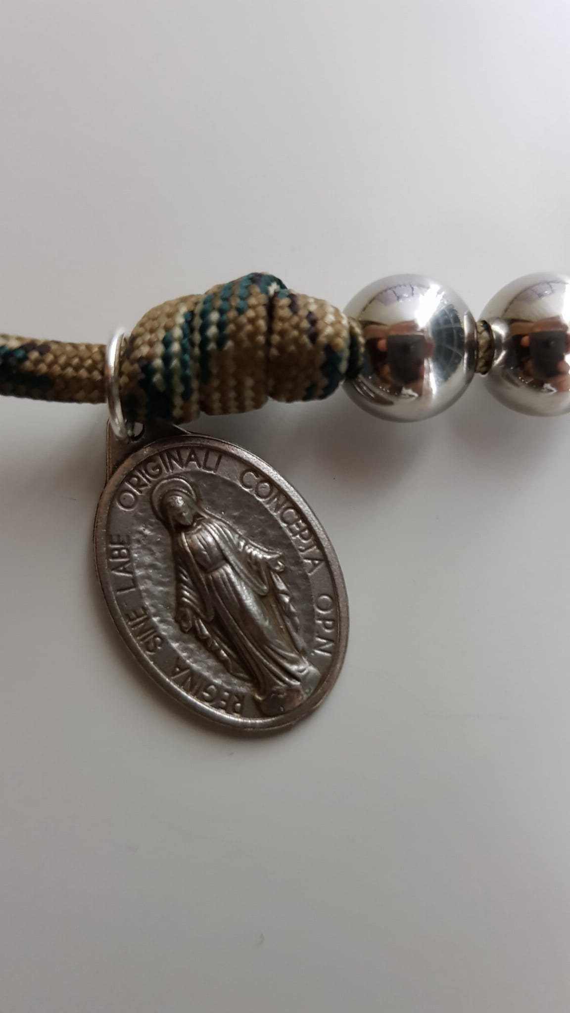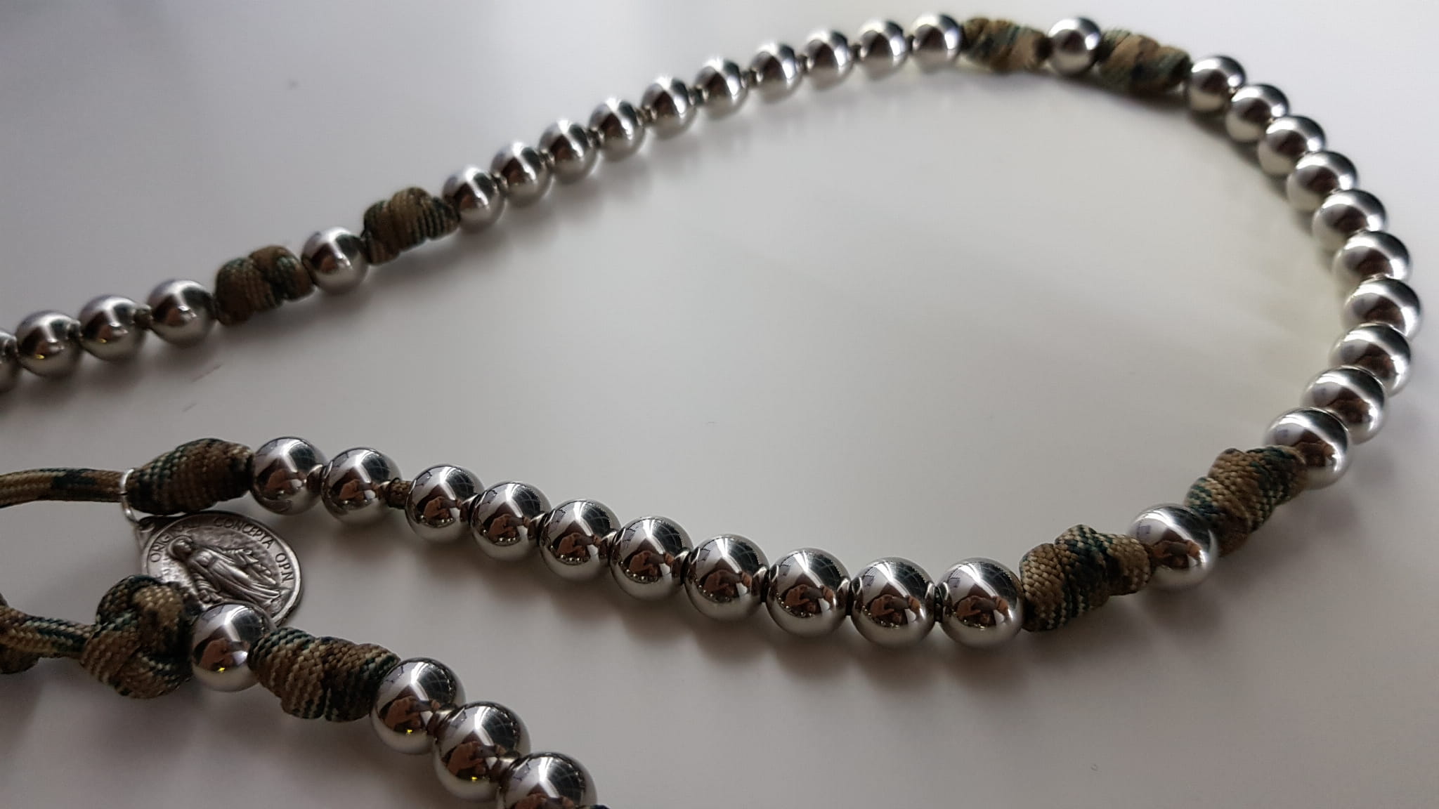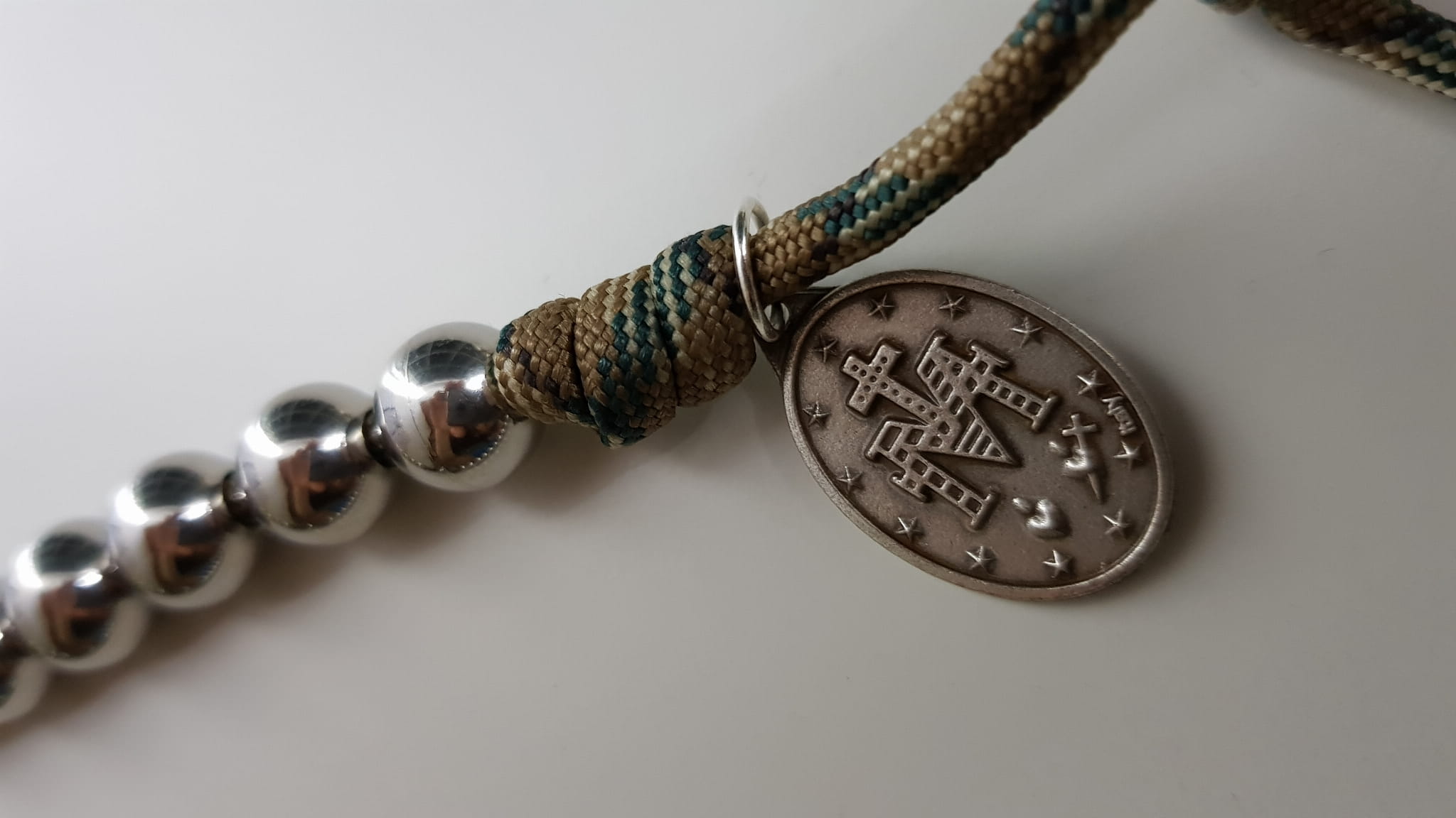 Różaniec jest wykonany z jednego odcinka bardzo wytrzymałej linki PARACORD.