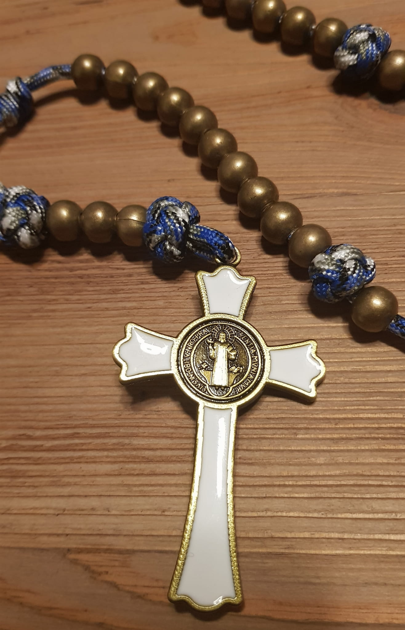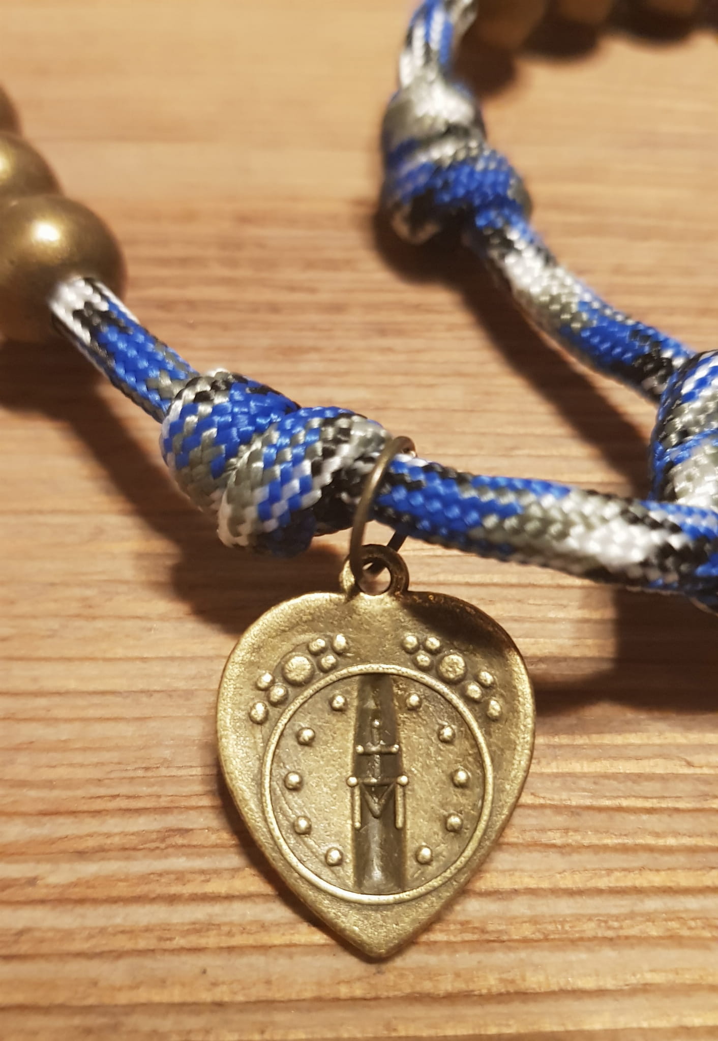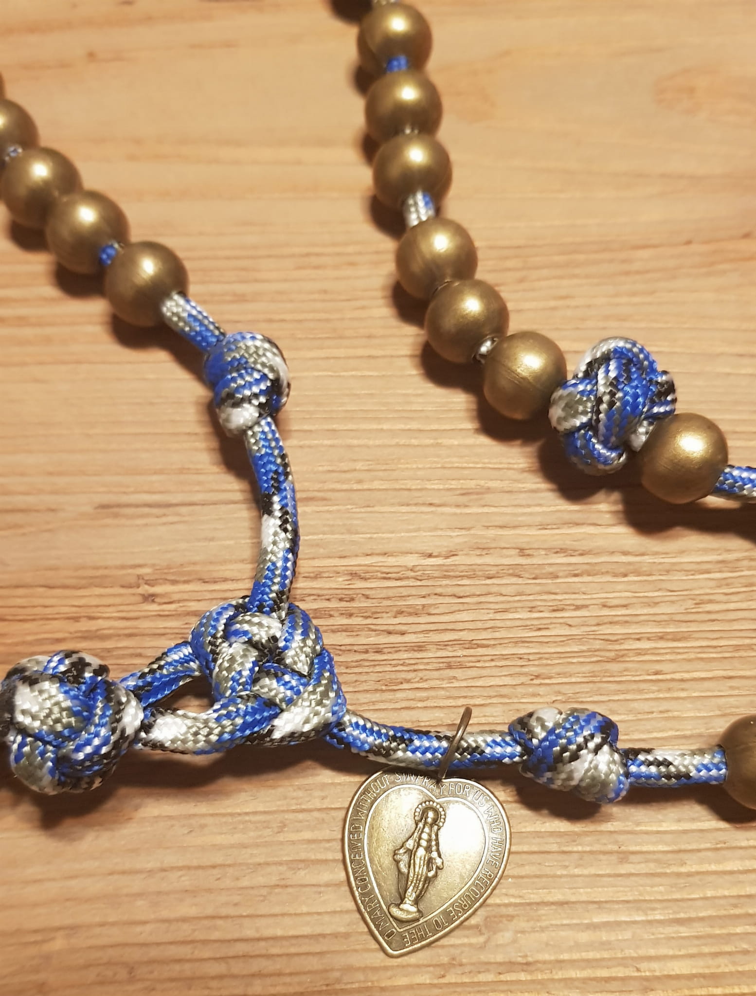 Różaniec jest wykonany z jednego odcinka bardzo wytrzymałej linki PARACORD.