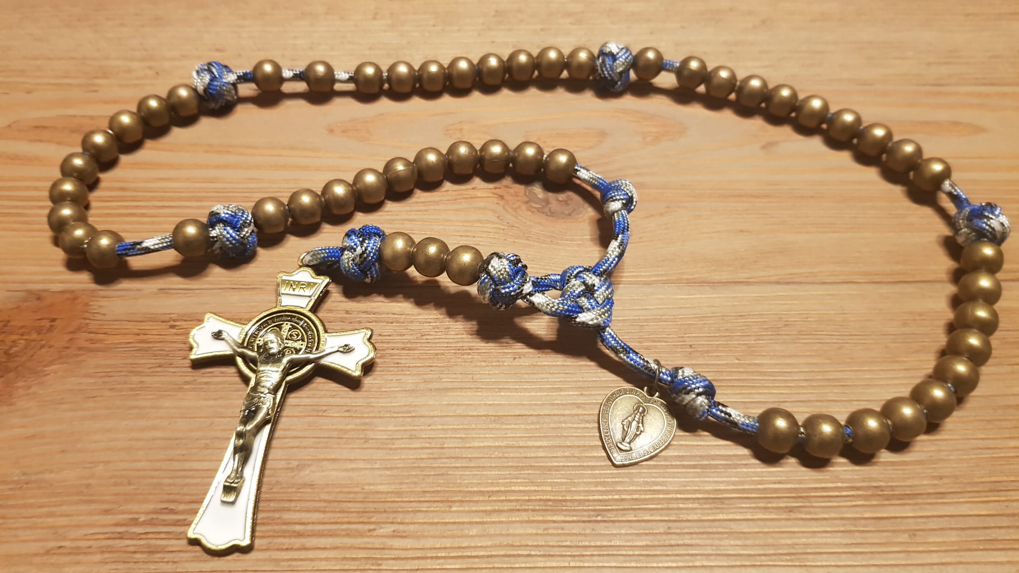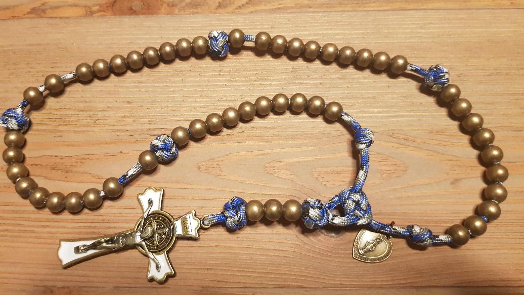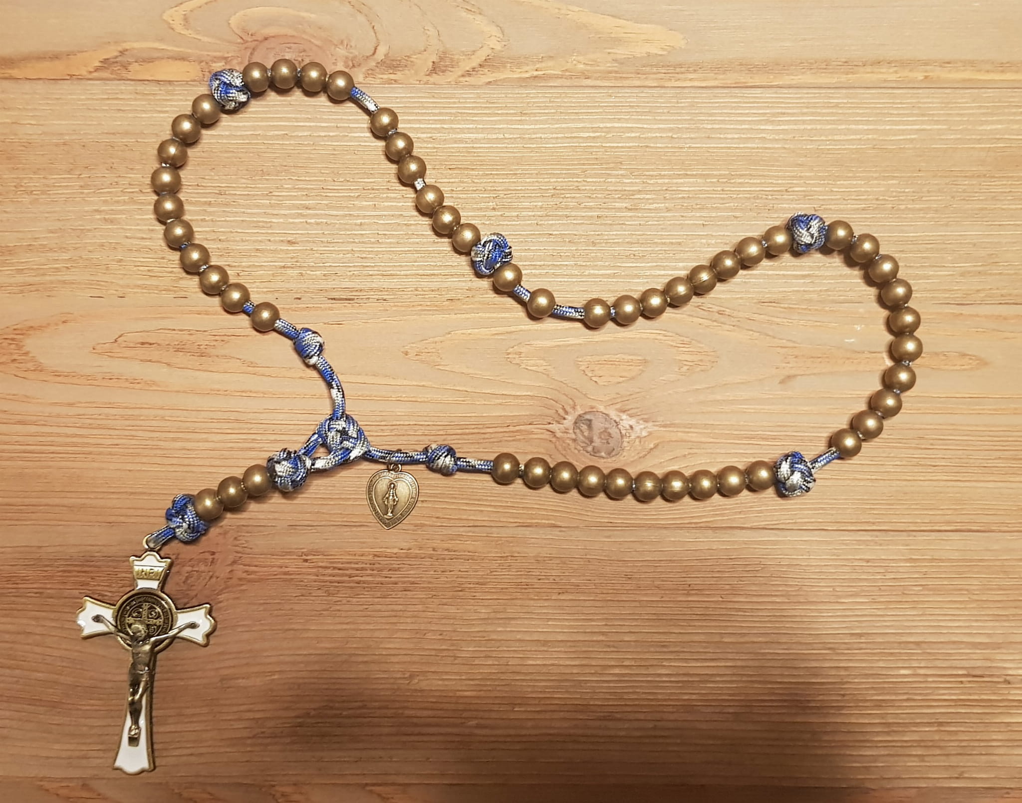 Różaniec jest wykonany z jednego odcinka bardzo wytrzymałej linki PARACORD.