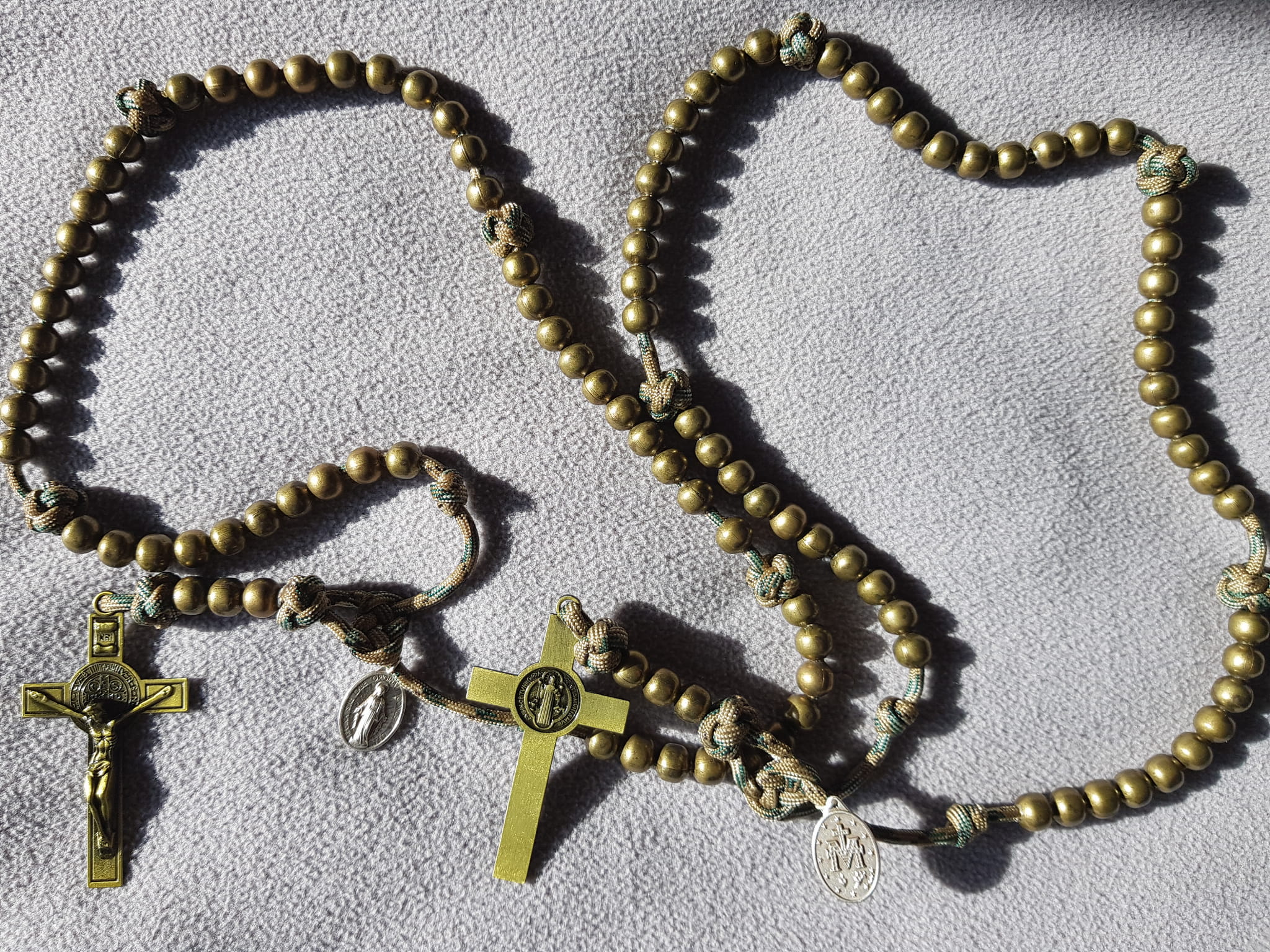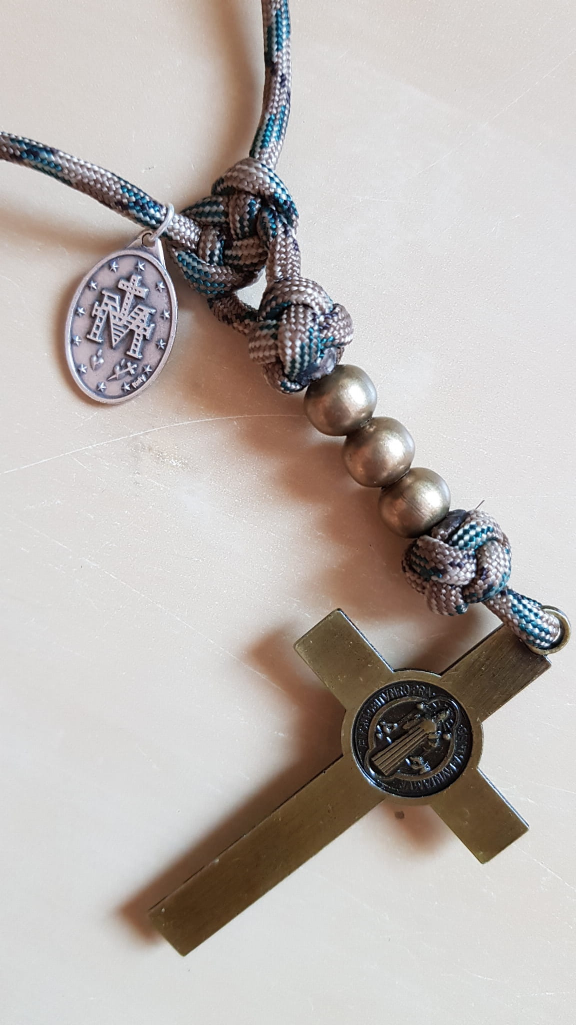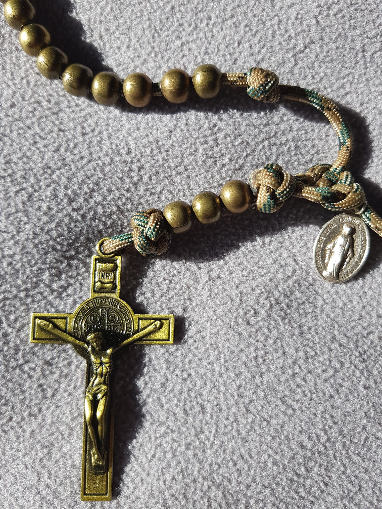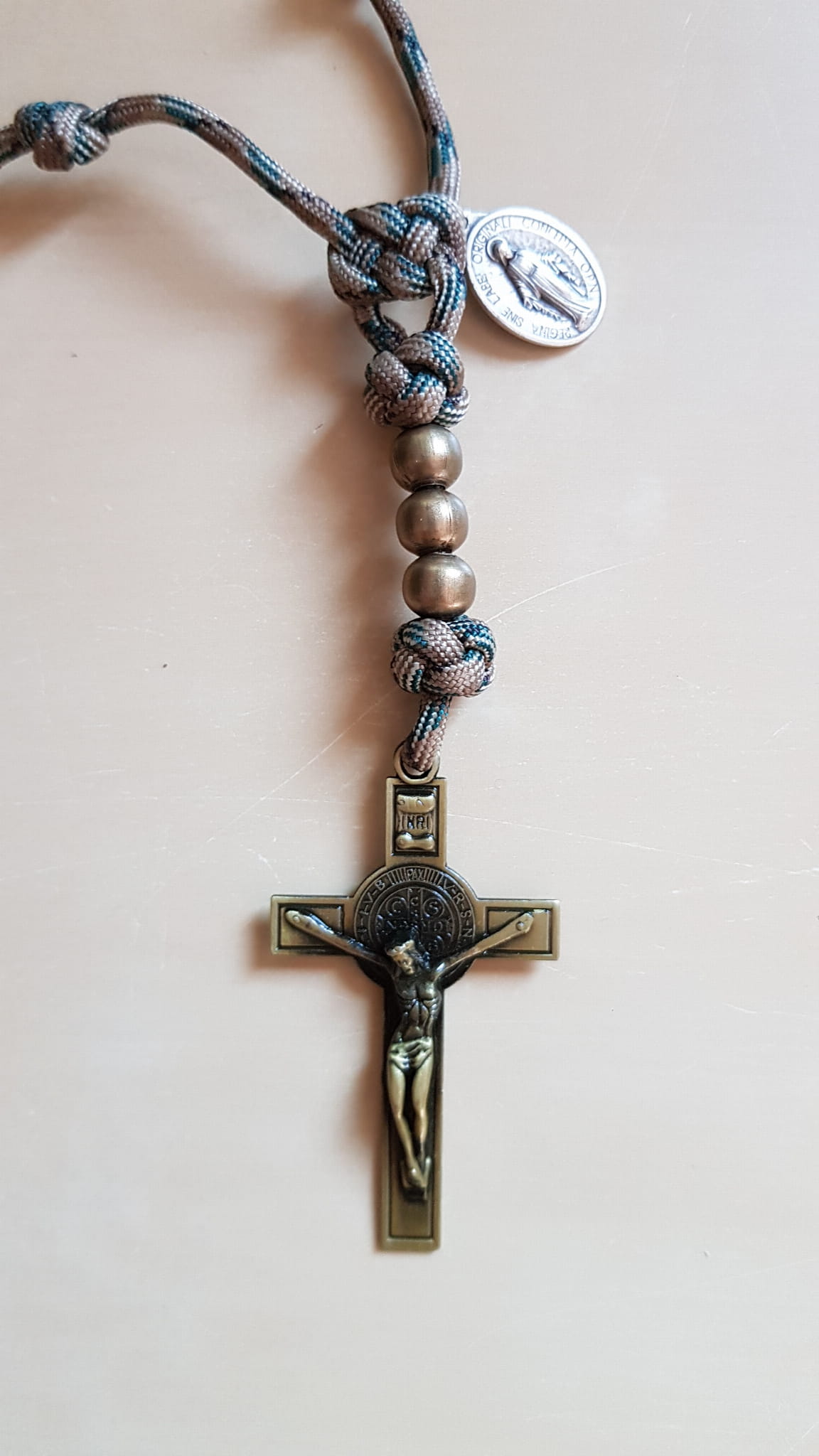 Różaniec jest wykonany z jednego odcinka bardzo wytrzymałej linki PARACORD.